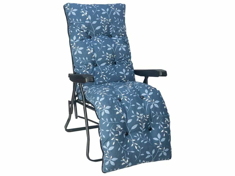 With a stylish blue floral crumb filled padded cushion for added extra comfort.